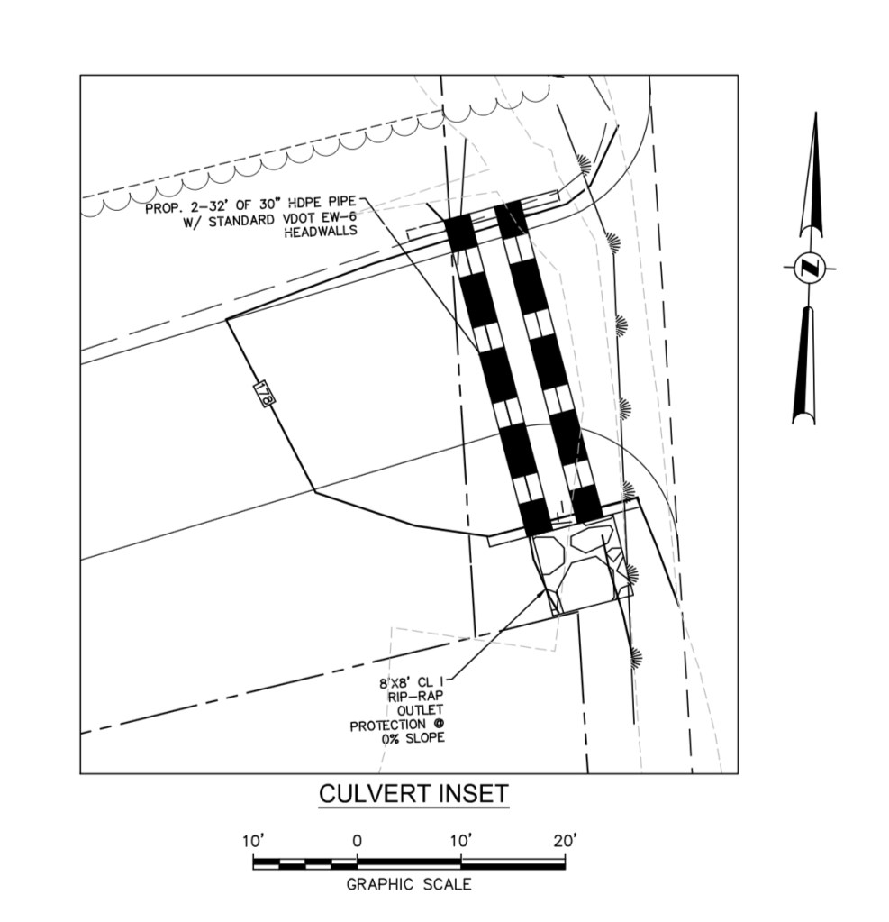 The reward for all the time, cost and frustration will be the most over-engineered ditch crossing along our entire rural road. Although our future neighbors directly to our north and south have to cross the same roadside ditch, their driveways feature a single 12 inch diameter pipe simply dropped into the ditch where their driveways are located. Our entrance, on the other hand, will feature two concrete abutments with a tandem of 32″ drainage pipes. Enough drainage volume to easily control a small creek with continuous flow, not the trickle of water that typically flows during the rainy season.