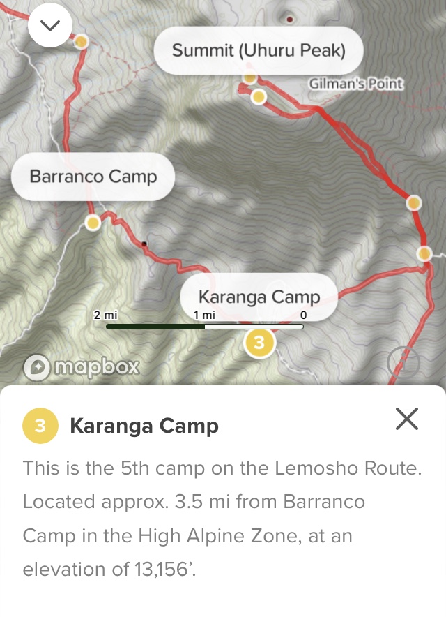 Day 5: Barranco Camp to Karanga Camp (13,156′); 3.5 mi.