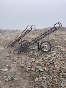 Below Barafu there was a dramatic change in the weather. For the most part, we had experienced about the best weather any of us could have hoped for during the past week. That changed when a cold sleet began to fall. We stopped briefly to put on our rain gear, then resumed the jarring descent. As we went lower, the air got thicker, but the sleet turned into a steady, cold rain that only made the rocky trail slick. By this point we were all ready to get to Mweka Camp and the warmth of the rain forest, but we still had hours ahead of us. Along the way we began to notice metal stretchers, and wheeled stretchers haphazardly lying on the side of the trail. These are pre-positioned along the trail to evacuate anyone who is too sick or injured to walk. Given the rough trail, I don’t think it would be a pleasant ride!