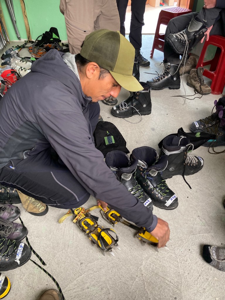 Now the fun begins! By this point in the story you may be wondering why we are spending our first day practicing ice climbing techniques. I suspect the real answer to that lies somewhere high on the mountain where we may need the acquired skill to navigate a particularly steep, icy section of the route. I’m sure you’ll be hearing about it in the days to come!