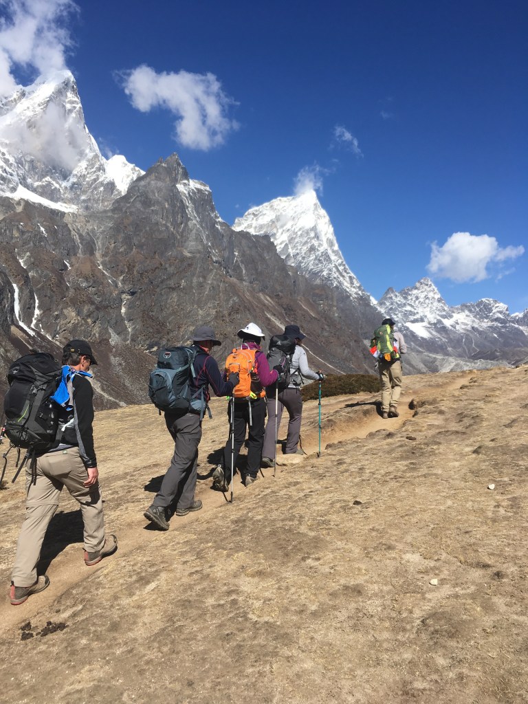 Ron, Alan, Karen, and Deb looking strong on the way to Lobuche!