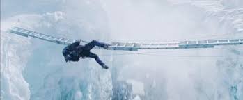 Crossing a crevasse in the Khumbu Icefall… this does not look fun!