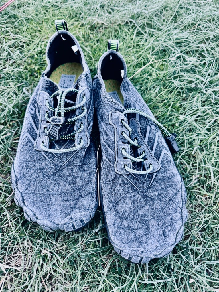 At the bottom of the steepest section, we encountered our first river crossing. To prepare, we removed our boots and socks, put on our water shoes, hiked up our pant legs, and carefully crossed the knee deep, ice cold river. Fortunately there was a convenient rope to hold onto while we made it across. The cold water felt good on our feet which, by this point, had endured many miles of rough terrain.
