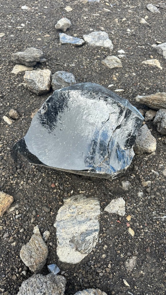 Another indication of the volcanic history of the landscape was seemingly endless fields of shiny black obsidian ( a glassy igneous rock formed when lava cools very quickly) and variegated hillsides showing rich mineral deposits in an array of colors. The challenge of the terrain was mitigated by the stunning and widely varying landscapes all around us.