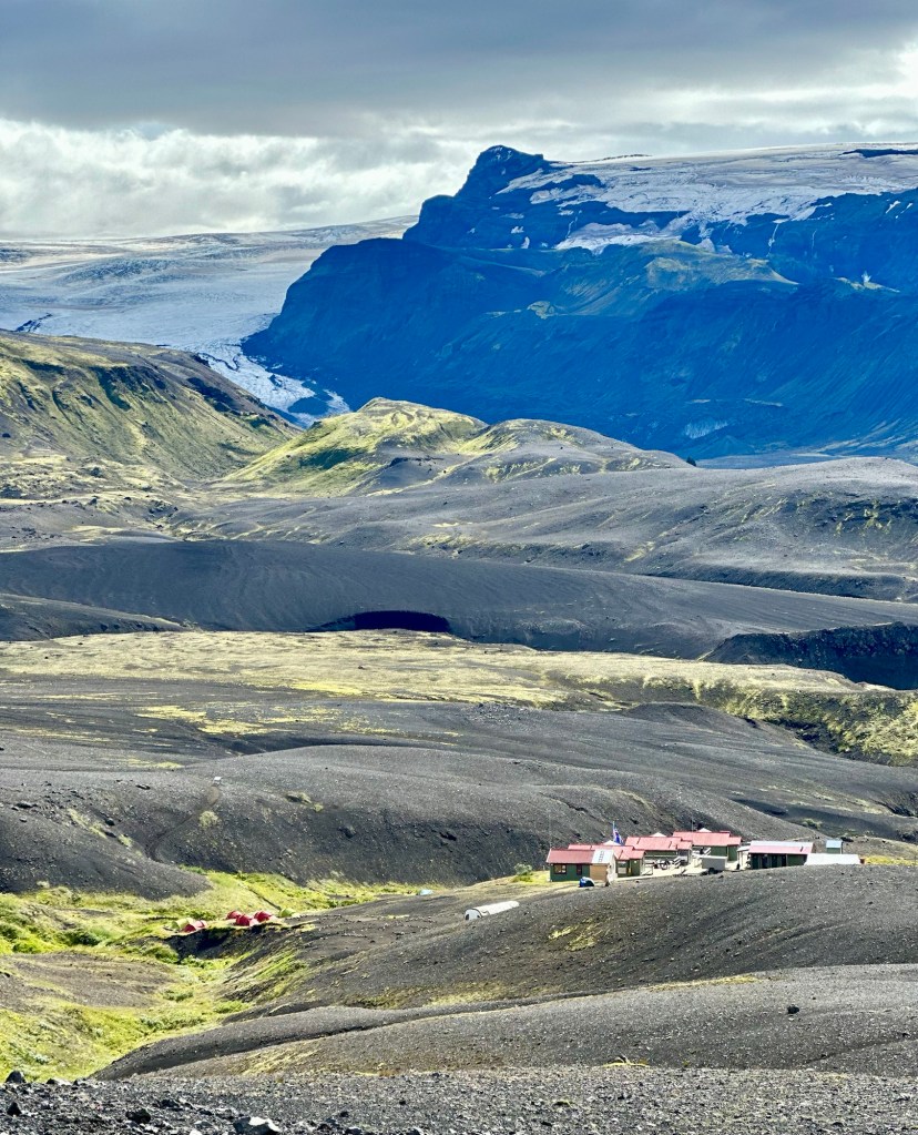 Emstrur Hut camp with Entujökull Glacier in the distance