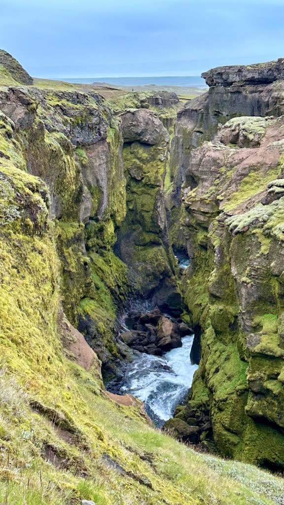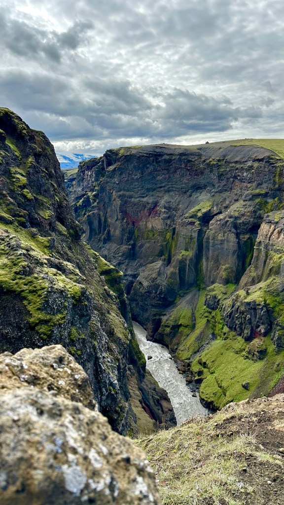We carefully approached the edge to look down into the narrow chasm to the glacier fed river far below… a great way to wrap up day 2 of our Icelandic adventure.