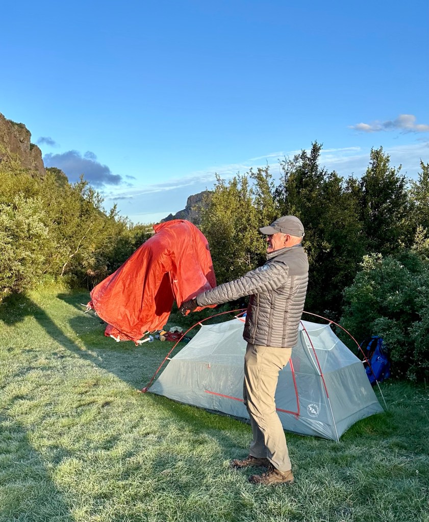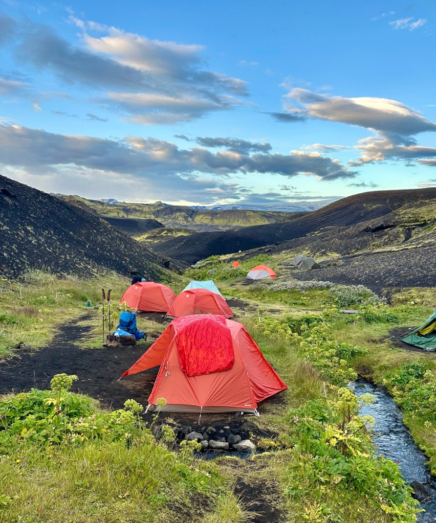 At around noon we crested the final lava bluff and could see our destination for the day, Emstrur-Botnar. Once again we paid the tent camping fee. Since we were some of the earliest hikers to arrive, we got to select some of the best tent sites in a protected area next to a gently babbling stream.