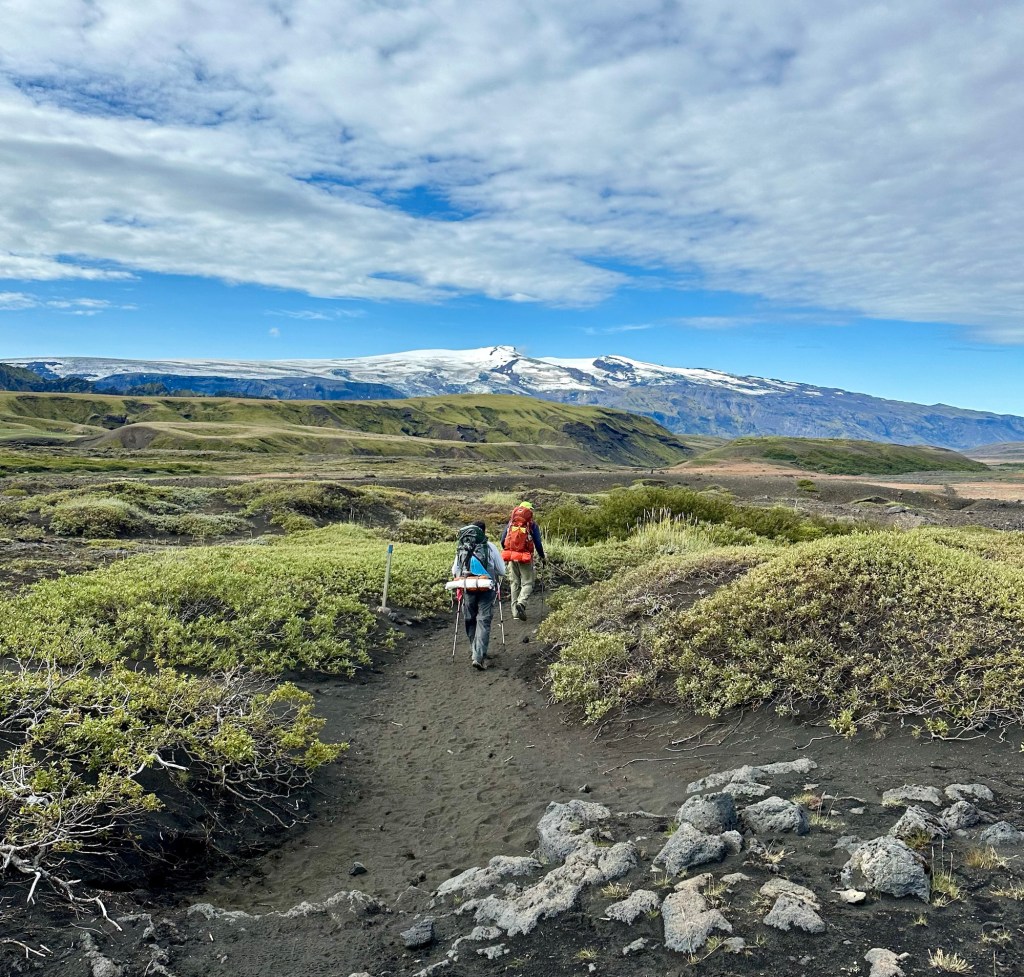 We woke up refreshed, with maybe a little stiffness, but eager to experience the day ahead. After the long haul and demanding terrain yesterday, we were looking forward the relatively flat lava fields we would be covering today on our 7.3 mi (11.8 km) hike to Emstrur-Botnar