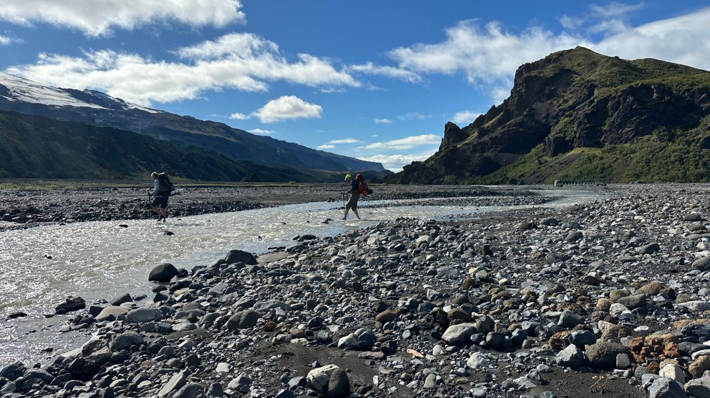 Finally it was time to get our stiff bodies up and moving again, because we wanted to get a head start on the Fimmvörðuháls Trail that officially began across a series of estuaries that make up the wide Krossá River plain.