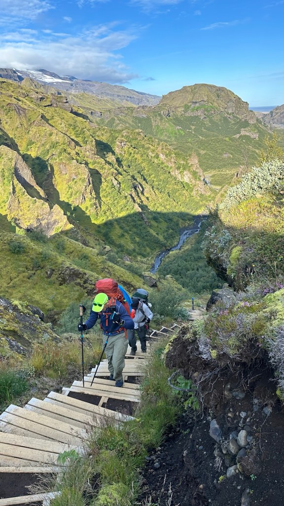 Author’s Note: For anyone who is considering this hike, I would emphatically recommend the north-to-south routing that begins at Þórsmörk, rather that the northbound option that starts in Skógar. The terrain profile out of Þórsmörk is significantly more aggressive which translates into steeper climbs going southbound, but if heading north, the descents on unstable rock and packed cinder can be treacherous.