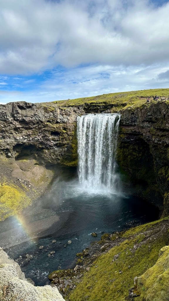 Nearing the end of our hike it was clear that the famous Skógafoss waterfall was close due to the sheer number of people we were passing on this lowest part of the trail. Surprisingly, we also passed some groups of hikers loaded down with heavy packs who were just beginning their day on the “F” trail as they passed us going the other way.