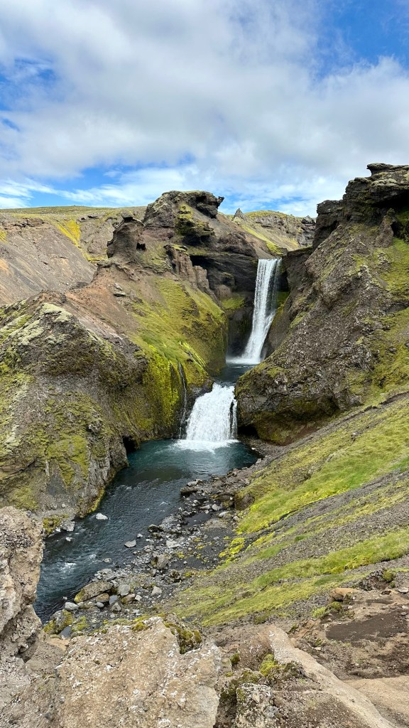 In the first 5 hours of our day we completed the first two sections. After a short 30 minute break at the Baldvinsskáli Hut to rest and eat lunch, it was time to tackle the final 8.5 mi (13.7 km) as we descend thru the Skógá River valley to Skogár.