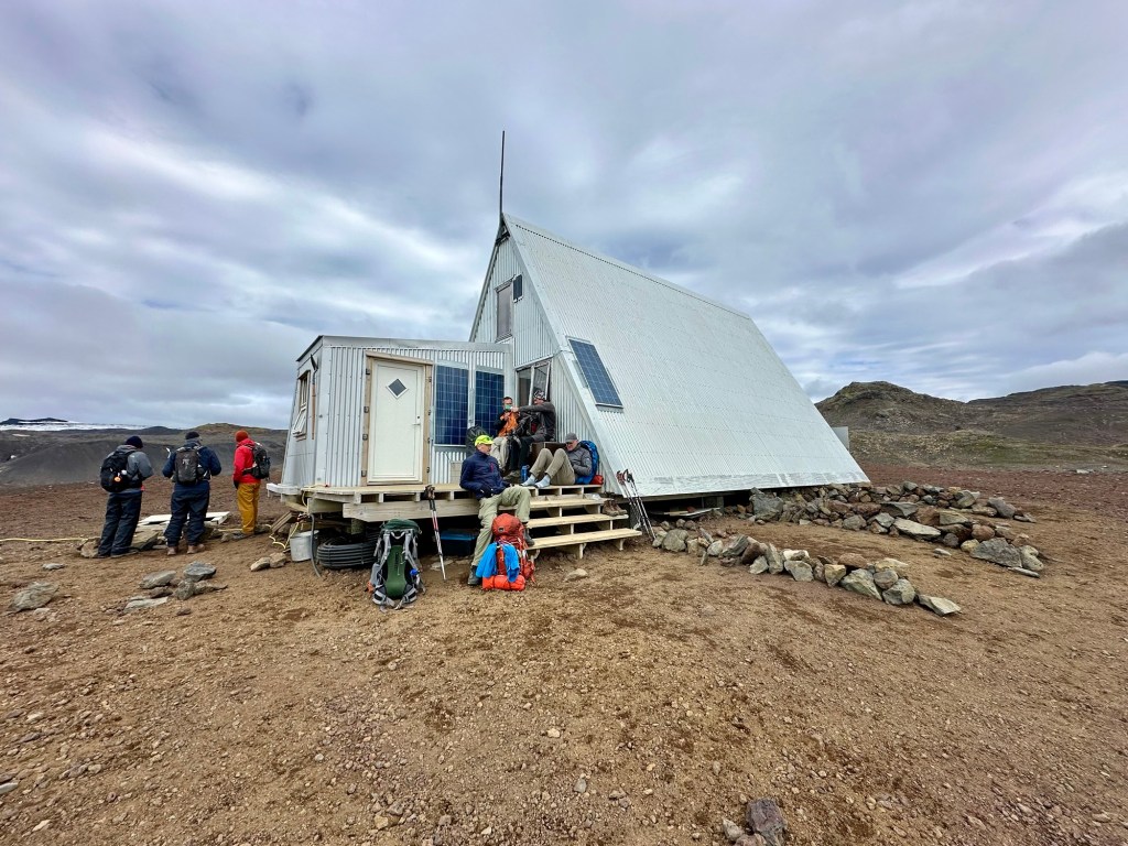 Finally, with a lot of effort, we made it through this last challenging section as we climbed back out of the moraine to the Baldvinsskáli Hut that appeared off in the distance. By the time we got there, we were definitely in need of a short break and some food to restore the calories we had expended. Sitting there on the hut steps as the cold wind blew, we were thankful that we still had the energy and motivation keep going and finish the demanding “F” trail.