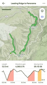 I generally hike fast without too many breaks, but am not particularly interested in hikes that take more than 4 to 4.5 hours. Ron, on the other hand, has seriously been upping the mileage, which means that I have reluctantly added length to my hikes. When we hike together, I relish the opportunity to “punish” him on the hills by setting an unrelenting pace (my passive-aggressive way to let him know that hikes in excess of 5 hours will come at a cost!).