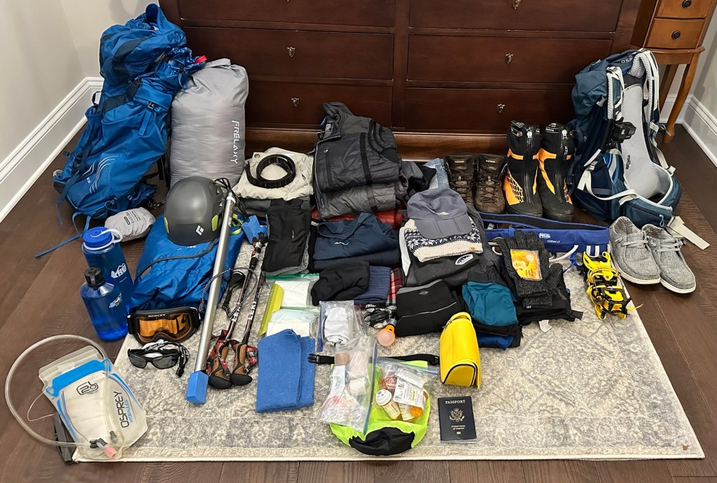 As the days and weeks tick down to our departure date, we are reviewing the inventory of gear and supplies we’ll need for what is essentially 8 days of acclimatization hikes and 4 days of serious technical mountaineering. The “acclimatization phase” is something that we are quite familiar with given past adventures to Everest Base Camp (Nepal), Kilimanjaro (Tanzania), and Huayna Potosi (Bolivia). In this phase we will be enjoying a series of day hikes of gradually increasing elevation to get our bodies accustomed to performing at higher elevations with significantly less oxygen.